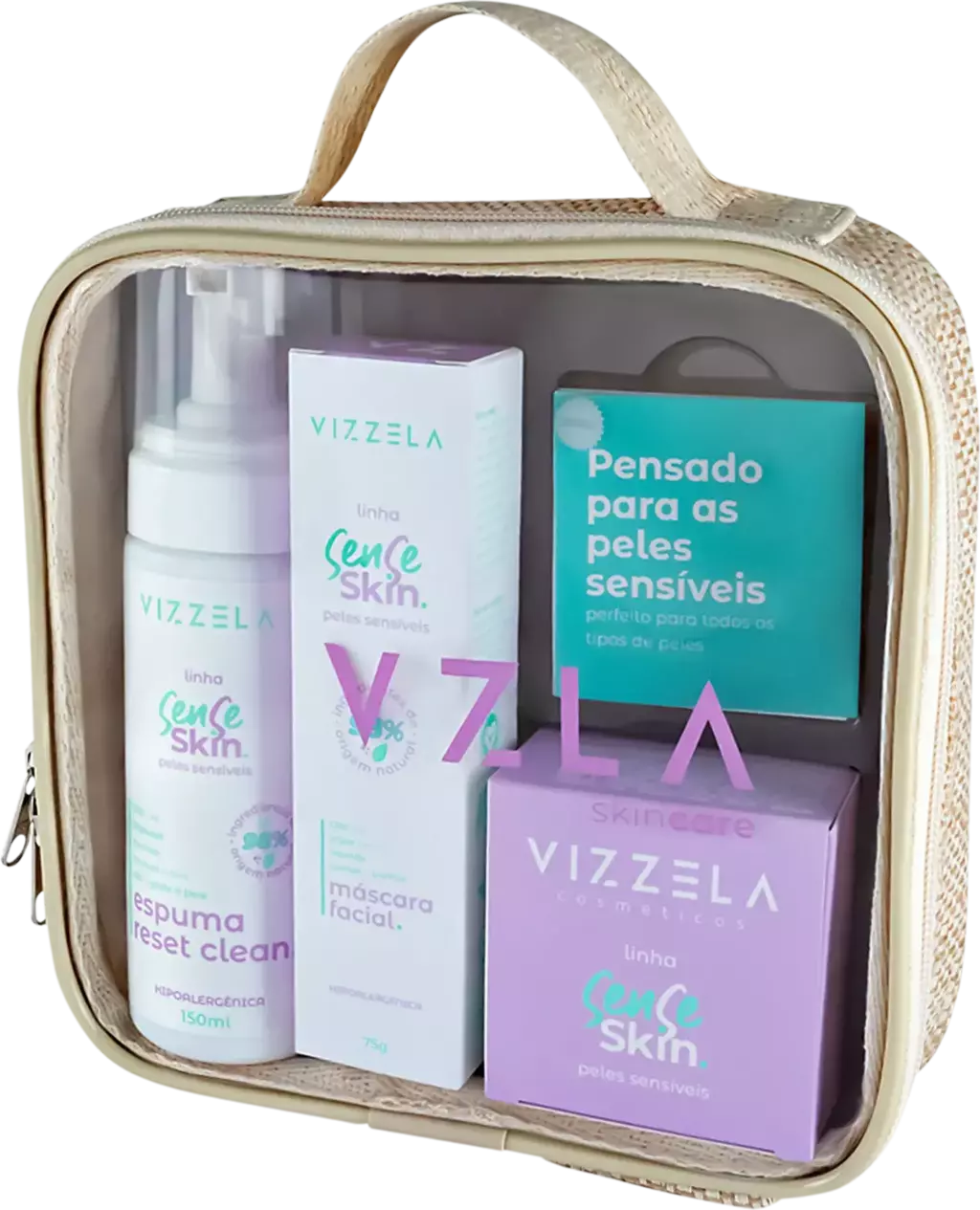 Kit de tratamento facial. Vizzela Cosméticos Sense Skin proporciona conforto e recuperação da barreira cutânea.
