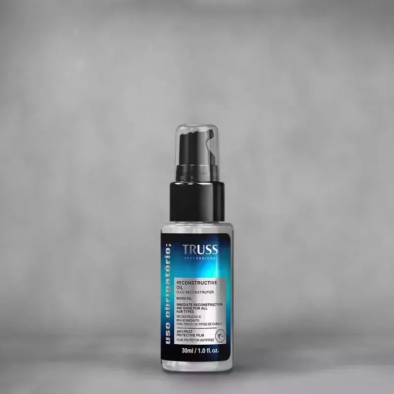 O Óleo Reconstrutor Uso Obrigatório; TRUSS é um poderoso aliado. Sua fórmula leve e de rápida absorção possui Óleo de Monoi, deixando seus cabelos macios e blindados contra o frizz. Ela penetra profundamente na fibra capilar, reparando os danos, selando as cutículas e criando um filme protetor contra as agressões externas. Confira mais benefícios: